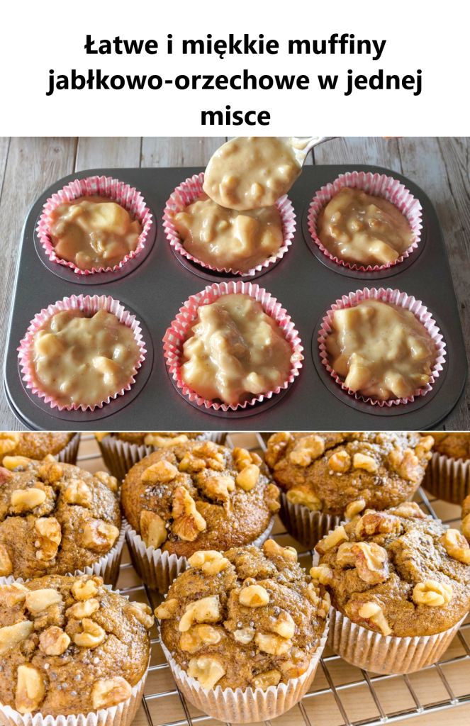 Łatwe i miękkie muffiny jabłkowo-orzechowe w jednej misce