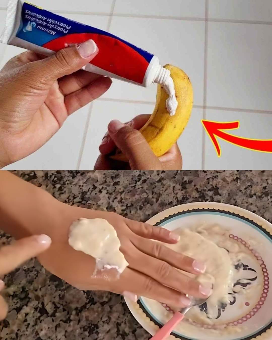 2- Wymieszaj rozgniecionego banana z sodą oczyszczoną i odrobiną pasty do zębów.
