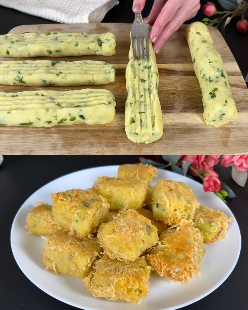 Pyszna i kusząca przekąska, idealna na aperitif lub do dzielenia się. Te chrupiące kulki o lepkim środku i złotej skórce zachwycą każdego! Składniki (na około 20 kulek): Puree ziemniaczane : 500