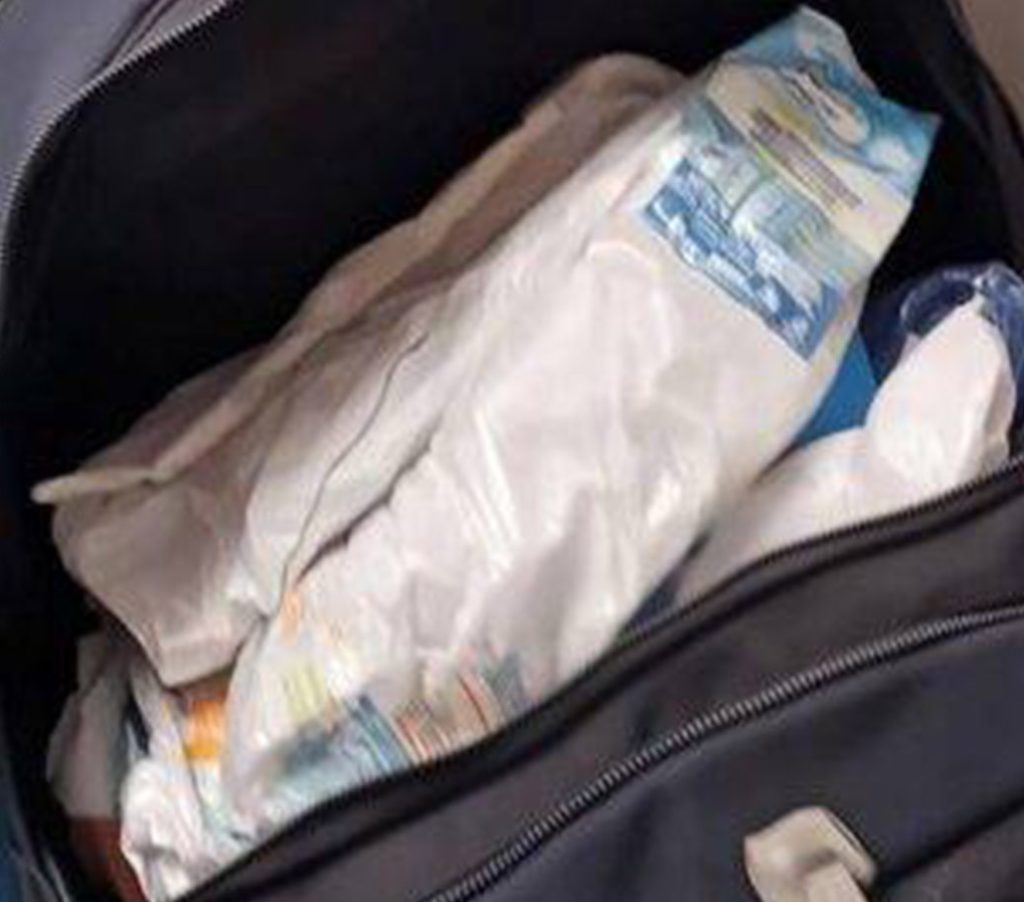 Wstrząsające odkrycie: pieluchy dla niemowląt w jego plecaku