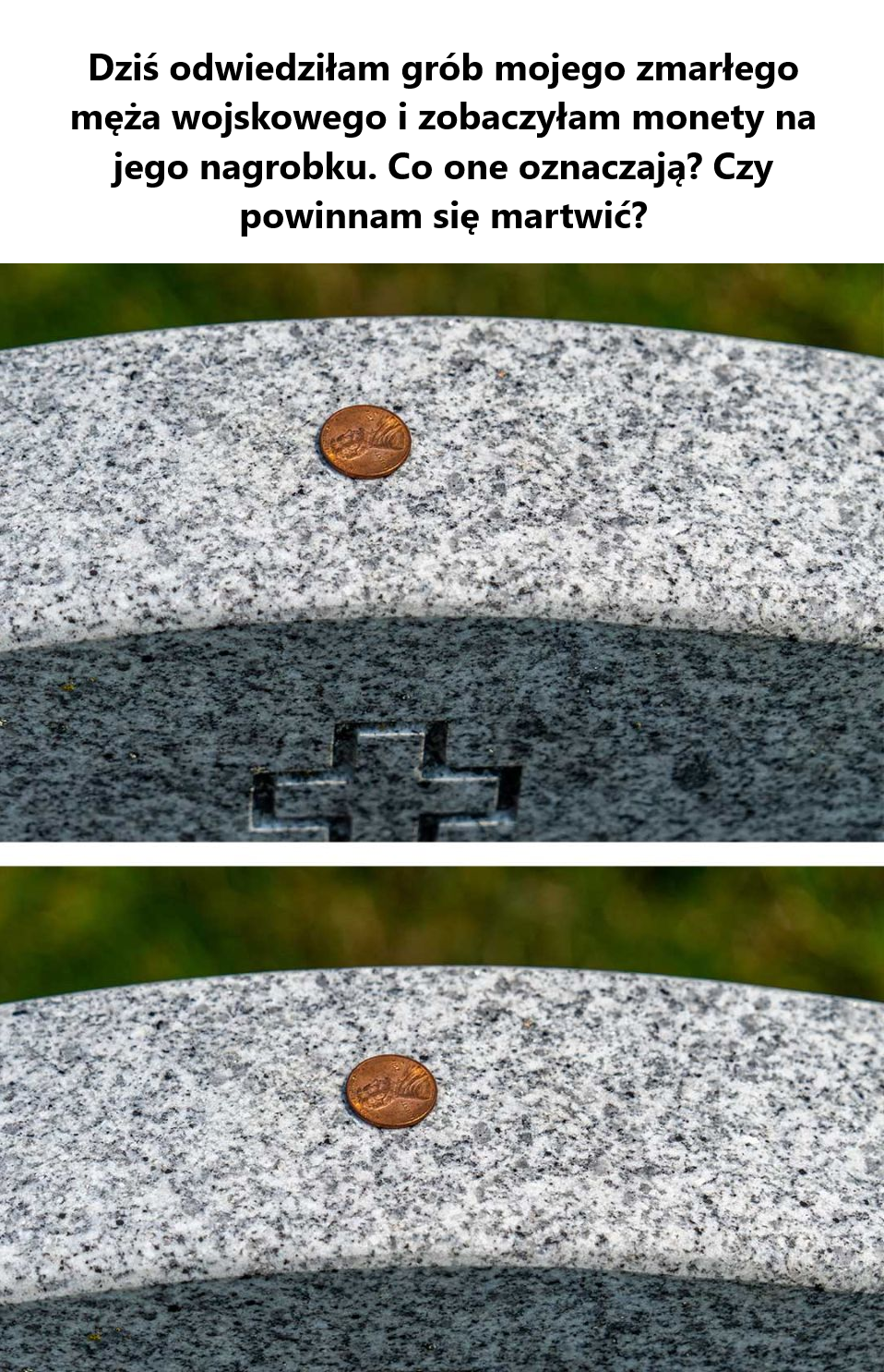Dziś odwiedziłam grób mojego zmarłego męża, który dzielnie służył w wojsku. To był moment pełen emocji, gdy rozmyślałam o naszych wspólnych wspomnieniach i poświęceniach, których dokonał. Gdy zbliżałam się do jego nagrobka, zauważyłam coś niezwykłego — monety o różnych nominałach umieszczone na kamieniu. Ten nieoczekiwany widok wzbudził moją ciekawość i trochę zaniepokojenia. Co oznaczają te monety i czy powinnam się martwić ich obecnością?