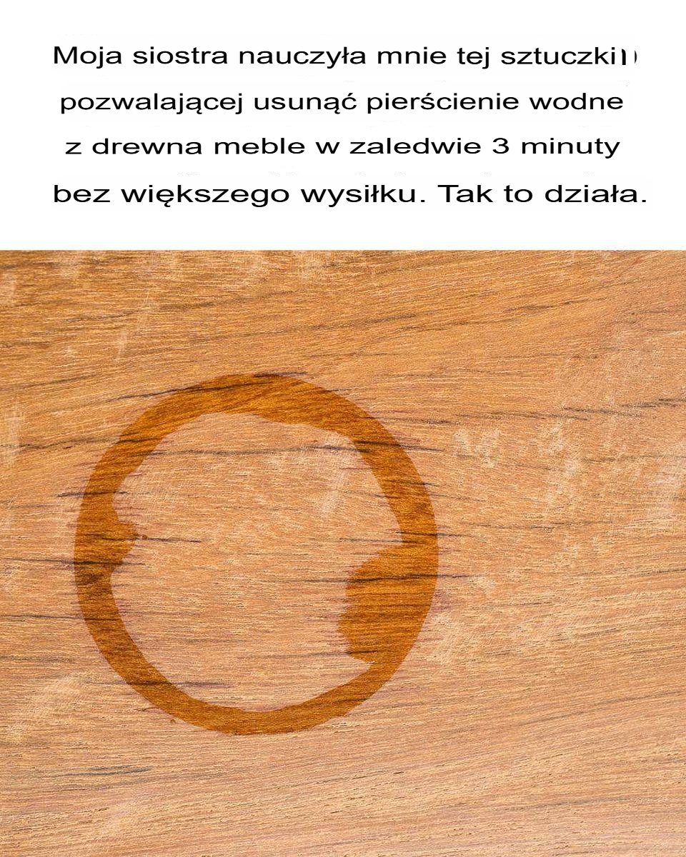 Piękno drewnianych mebli może zostać łatwo przyćmione przez te irytujące ślady wody pozostawione przez szklanki i kubki. Te nieestetyczne ślady mogą odciągnąć uwagę od estetyki pokoju i nadać zaniedbany wygląd w innym przypadku nieskazitelnym meblom. Usuwanie śladów wody było tradycyjnie wyzwaniem, często wymagającym drogich produktów lub znacznego wysiłku. Jednak odkryłam niesamowicie prosty i skuteczny trik od mojej siostry, który może usunąć te uciążliwe ślady w ciągu zaledwie trzech minut, praktycznie bez żadnego wysiłku.