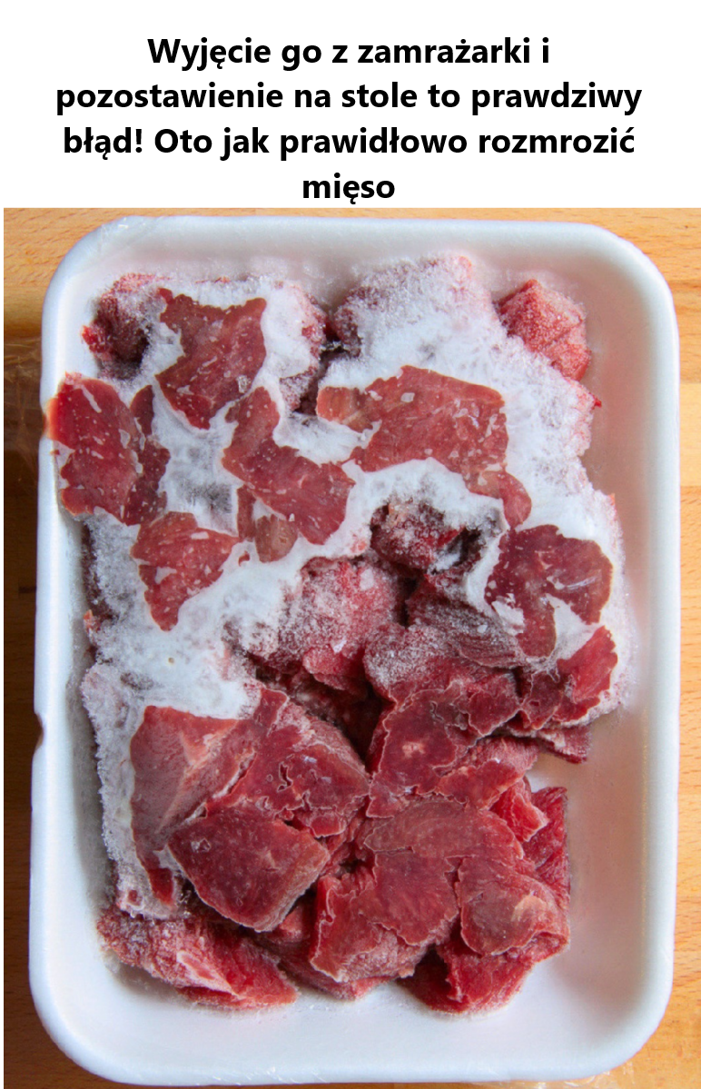 Najlepszym sposobem na rozmrożenie żywności jest umieszczenie jej w opakowaniu na talerzu na dolnej półce lodówki. Dlaczego? Temperatury zamrażarki nie zabijają bakterii, po prostu zapobiegają ich rozwojowi. Jednak gdy pozostawiamy mięso w temperaturze pokojowej, bakterie zaczynają się rozmnażać. Z drugiej strony, temperatury lodówki spowalniają rozwój bakterii, utrudniając im rozmnażanie się.