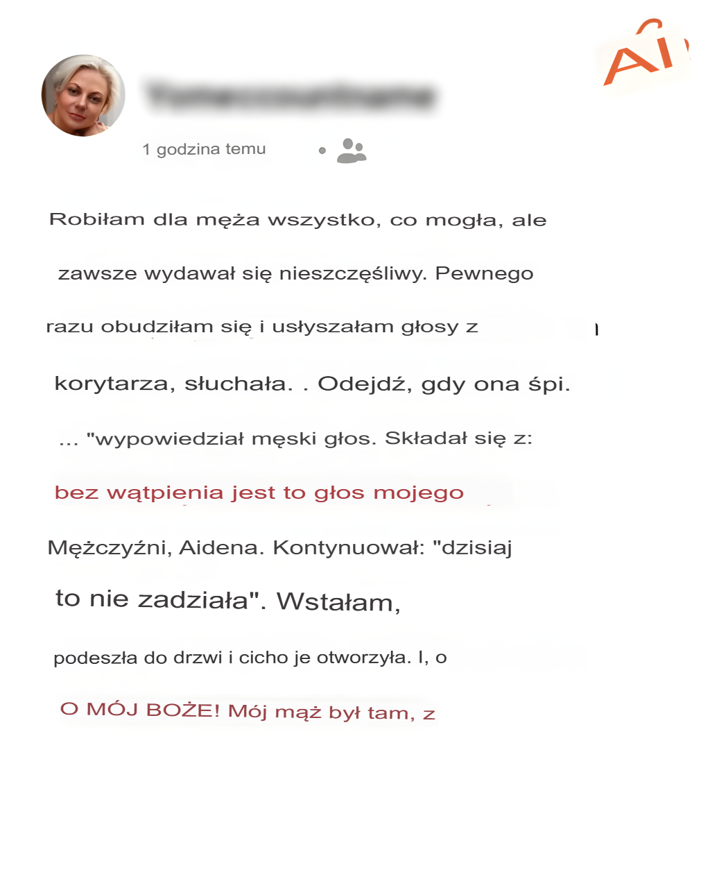 Robiłam wszystko, co mogłam dla męża, ale on zawsze wydawał się niezadowolony. Pewnego dnia obudziłam się i usłyszałam głos męża w korytarzu, w towarzystwie kobiety. „Jak on mógł to zrobić?”, pomyślałam. I to była kropla, która przelała czarę goryczy.