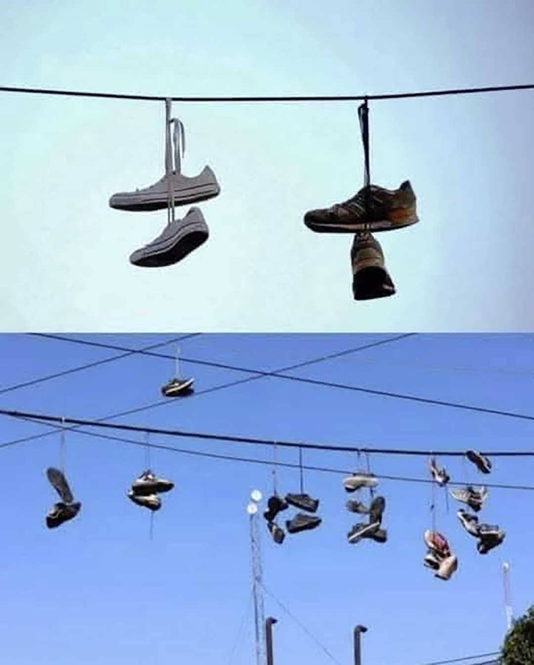 W wielu przypadkach te wiszące trampki to po prostu fajna pamiątka lub wyzwanie dla przyjaciół. Koniec roku szkolnego, przeprowadzka, wejście w dorosłość… Świętujemy koniec pewnej ery małym, symbolicznym gestem. Rzut trampkami, wybuch śmiechu i oto są, powiewające na wietrze, jako ukłon w stronę ważnego momentu.