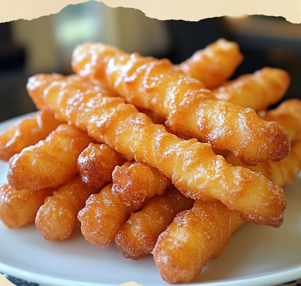 Patyczki z ciasta lejkowego to pyszna wersja tradycyjnego ciasta lejkowego, oferująca tę samą chrupiącą, złocistą słodycz w zabawnej, przekąskowej formie. Idealne do dzielenia się, te patyczki są lekko oprószone cukrem