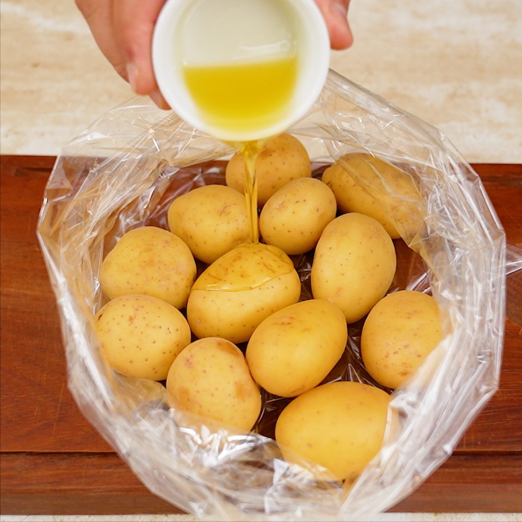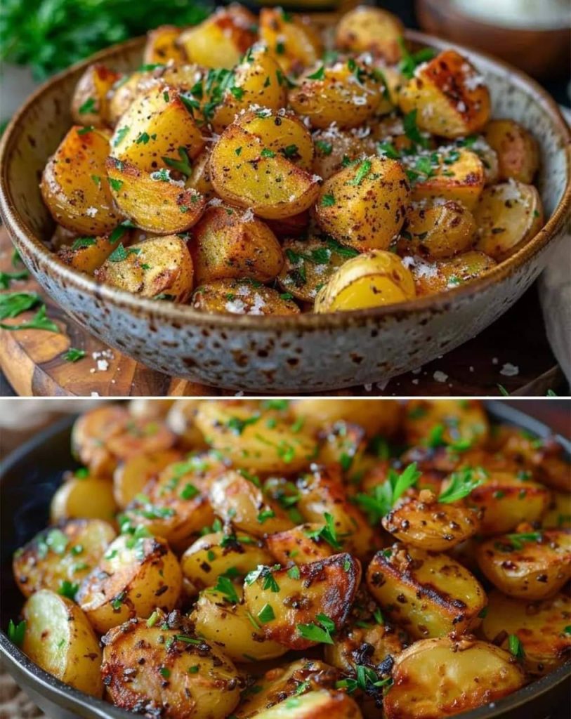 Pieczone ziemniaki z czosnkiem i masłem Pieczone ziemniaki z masłem czosnkowym Odkryj eksplozję smaków dzięki naszym pieczonym ziemniakom z masłem czosnkowym! Chrupiące na zewnątrz, delikatne w środku. Składniki: 1 kg