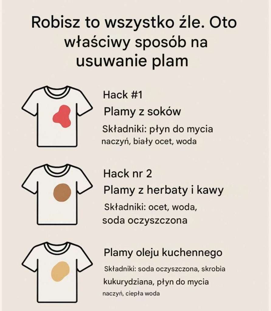 - Używanie gorącej wody na plamy białkowe: Krew lub jaja gotowane w gorącej wodzie mogą się utrwalić, zamiast zniknąć.