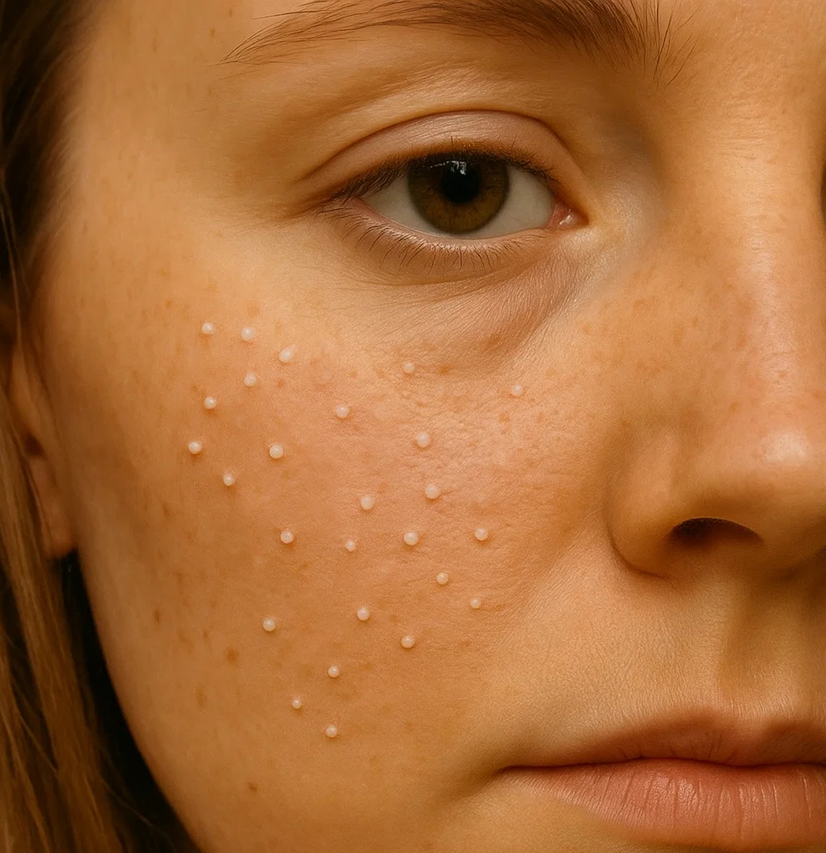 Milia to białe grudki, które tworzą się na skórze, zwłaszcza pod oczami. Są to po prostu małe cząsteczki tłuszczu, które osadzają się w różnych warstwach skóry wraz z martwymi komórkami .
