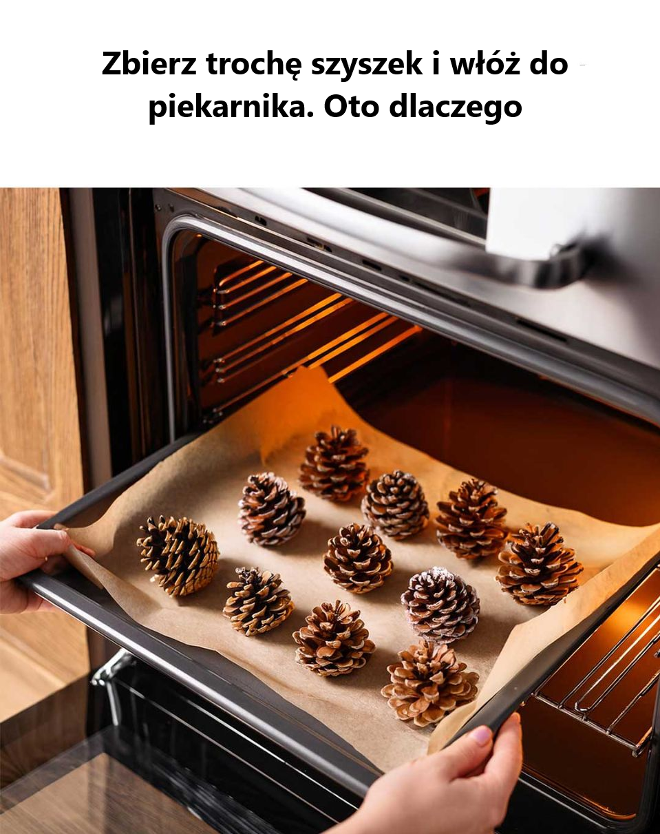 Pieczenie szyszek sosnowych służy wielu celom. Zabija wszelkie pozostałe owady lub larwy, dezynfekuje szyszki i pomaga w pełni otworzyć łuski, dzięki czemu są bardziej estetyczne i uniwersalne do majsterkowania. Ponadto wzmacnia zapach sosny, dodając do domu zachwycający aromat.